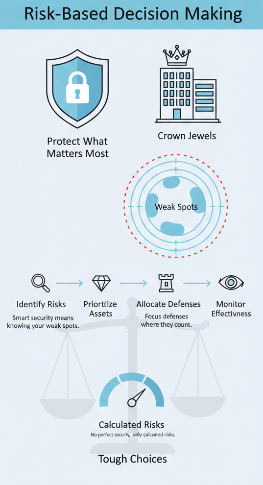 Making smart security choices means knowing where your weak spots are – and being honest about them. It’s about figuring out what you can’t afford to lose, then working backward from there.