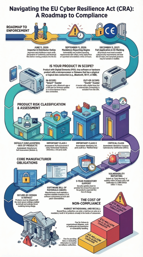 • The timeline is strict. While the law is active now, the full weight of product requirements hits on December 11, 2027, with vulnerability reporting starting September 2026.