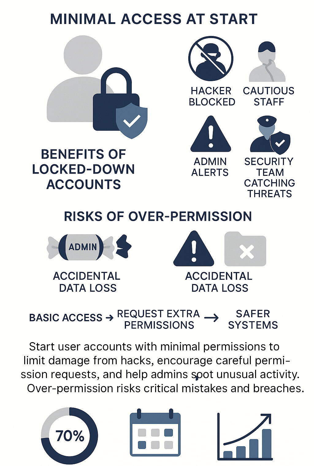 When accounts start with just the basics, users actually think about what access they really need. Sure, it means more work for IT handling permission requests, but that beats dealing with a breach. Even better, when someone does get hacked (and someone always does), the damage stays small.