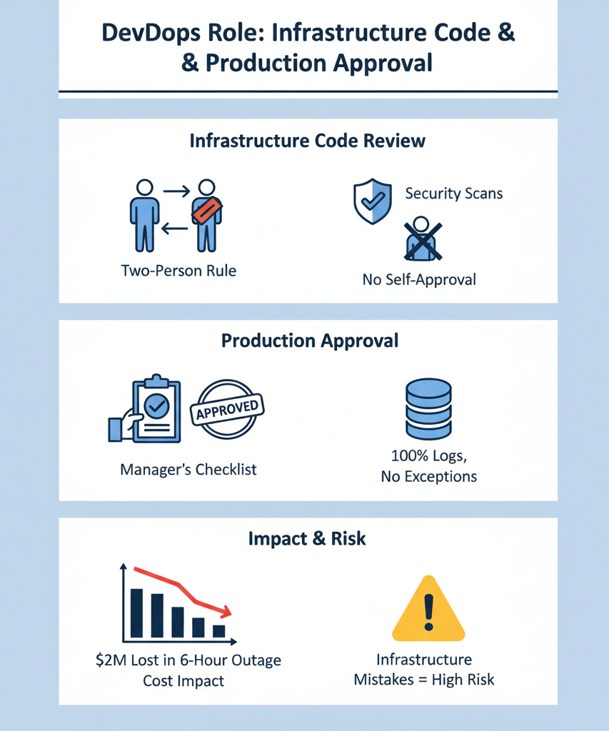 DevOps Role: Restrictions on Infrastructure Code and Production Approval