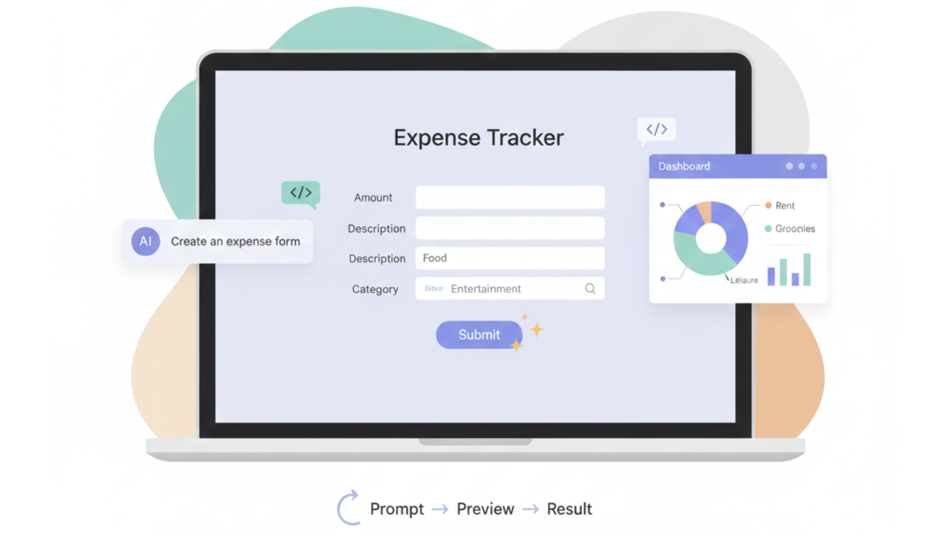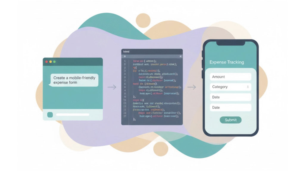 Your First Prompt: “Create a mobile-friendly form for entering an expense. It should have fields for amount, category (like Food, Transport, Entertainment), and date. Use a simple, clean design.”